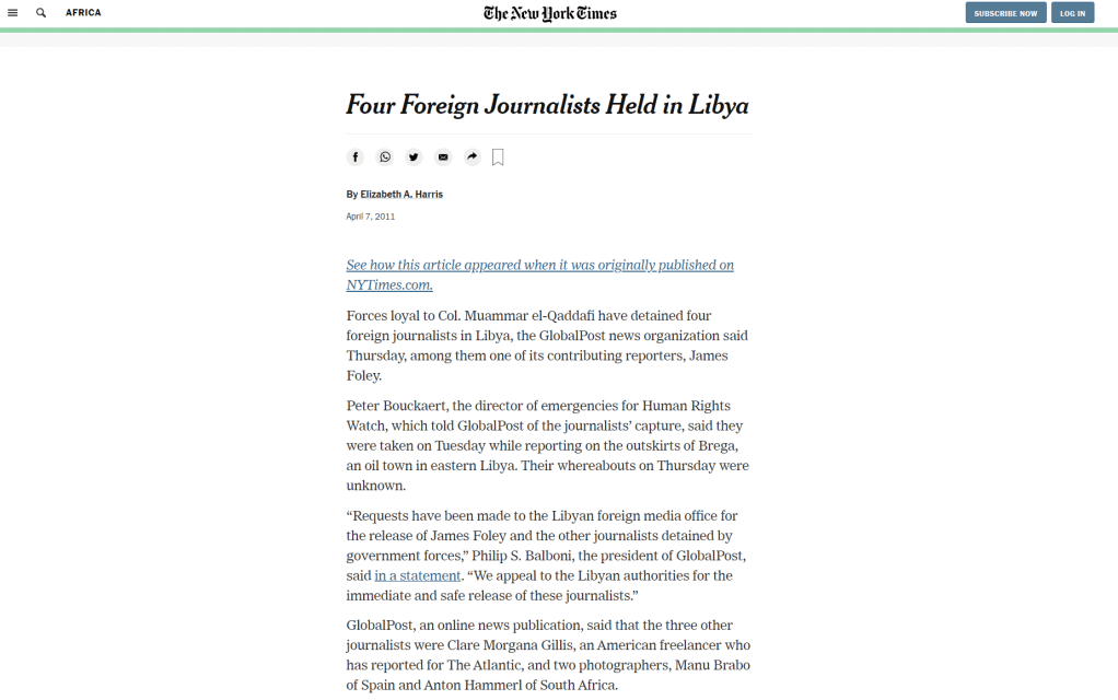 New York Times: April 7, 2011 (PRINT)